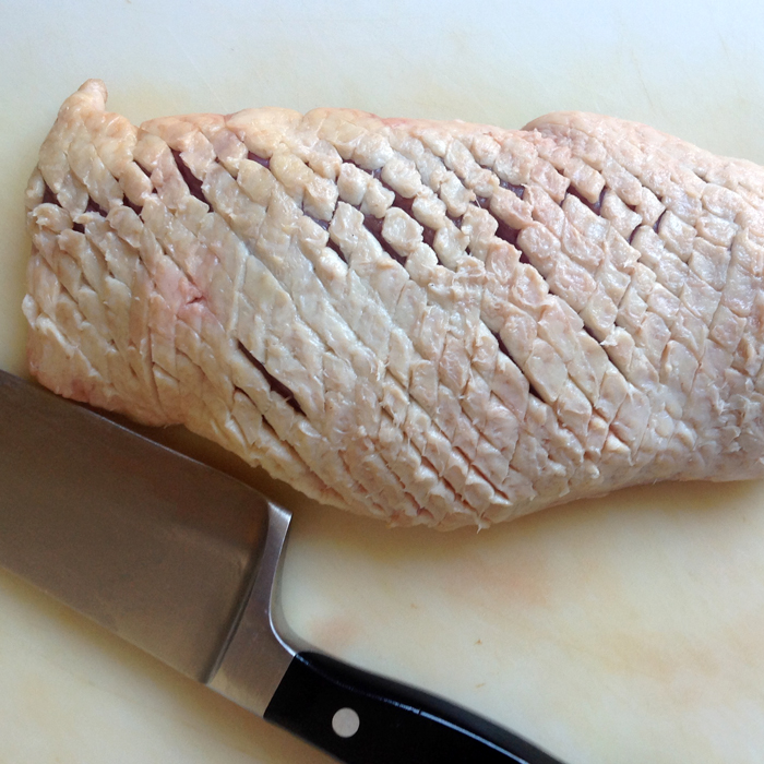 Haut rautenförmig einschneiden
