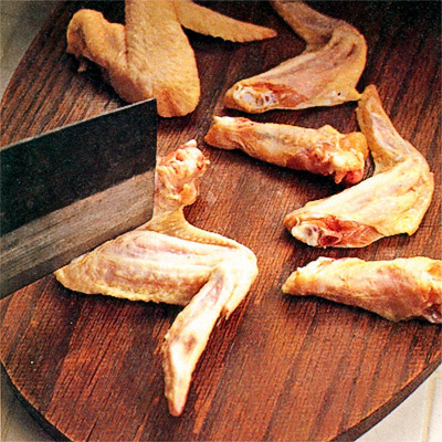 Mit einem Hackmesser den grossen Teil des Flügels entfernen