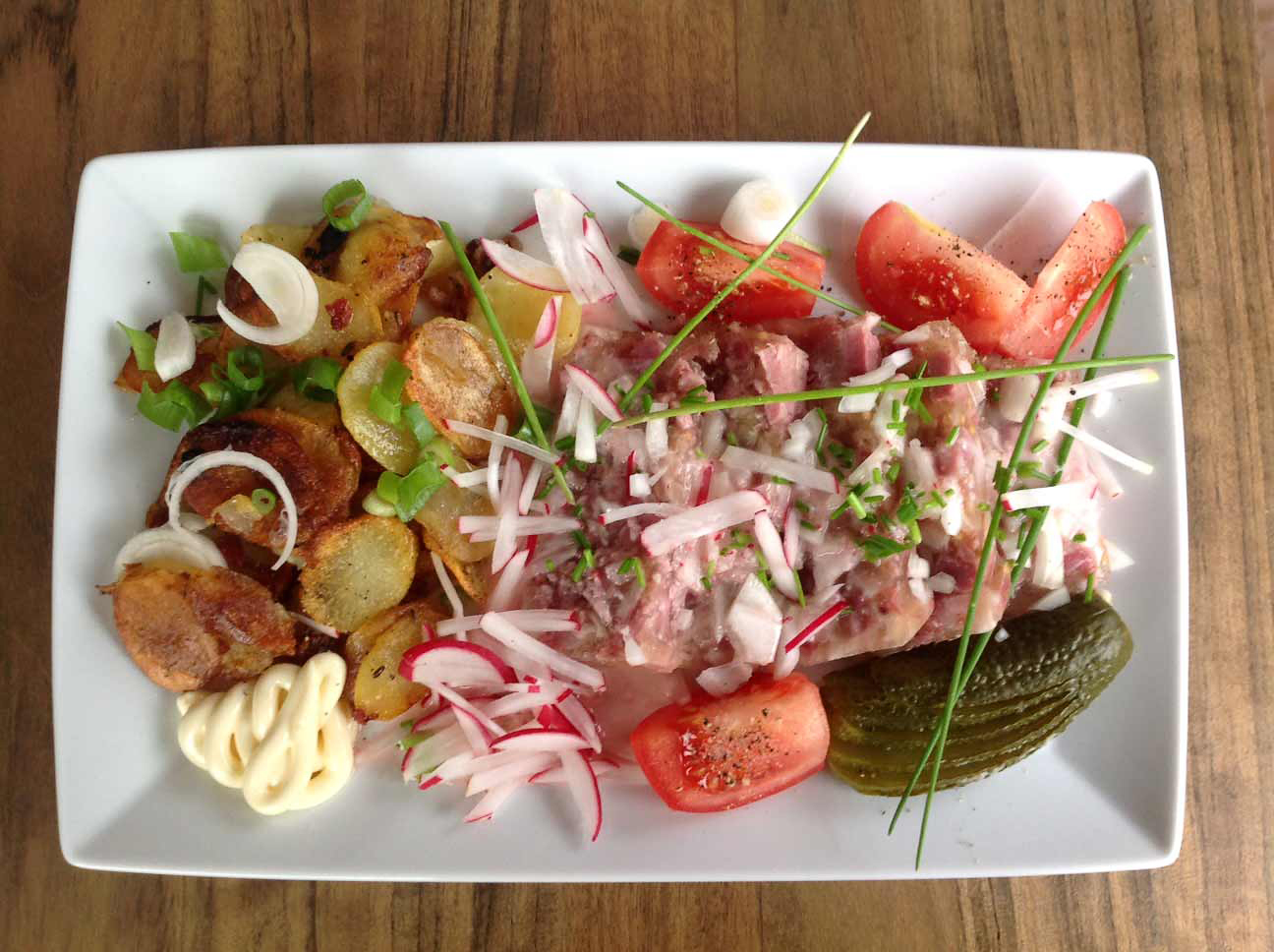 Sülze mit Bratkartoffeln und Radieschenvinaigrette