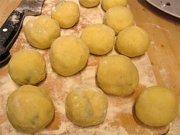 in heissem Wasser ziehen lassen, bis sie oben schwinmen