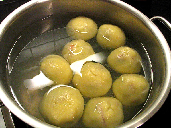 in heissem Wasser ziehen lassen, bis sie oben schwinmen